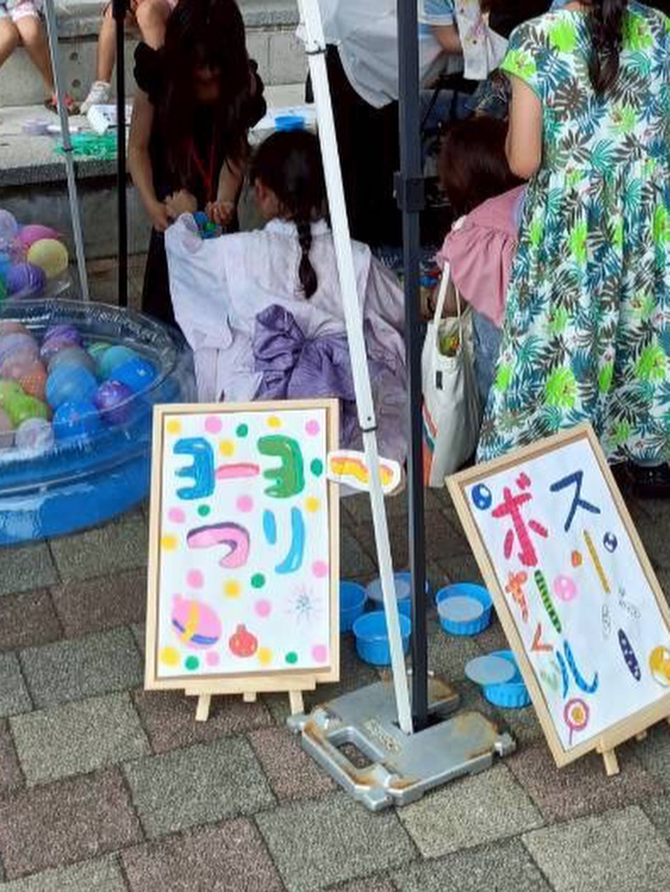 私たちが学生団体を結成してから初めてのイベント参加で、不安や緊張でいっぱいの中、元気いっぱいな子どもたちや活力溢れるボランティアの方々、色々な場面でご協力してくださるリニモテラスの職員さんに支えられ、学生らしく夏祭りをやりきることができました!!